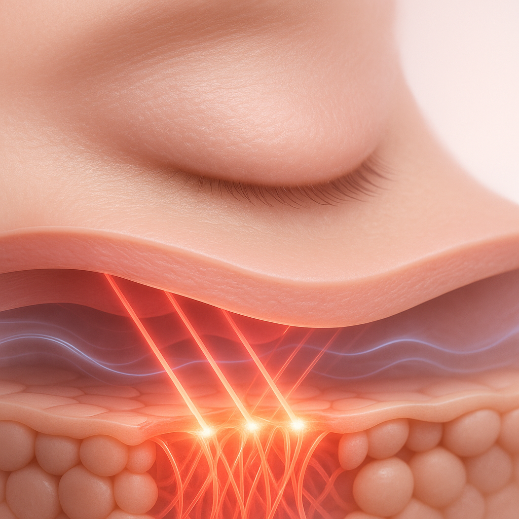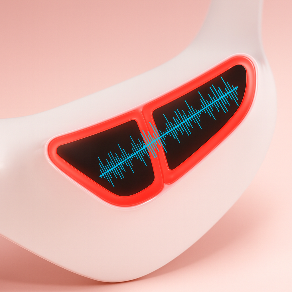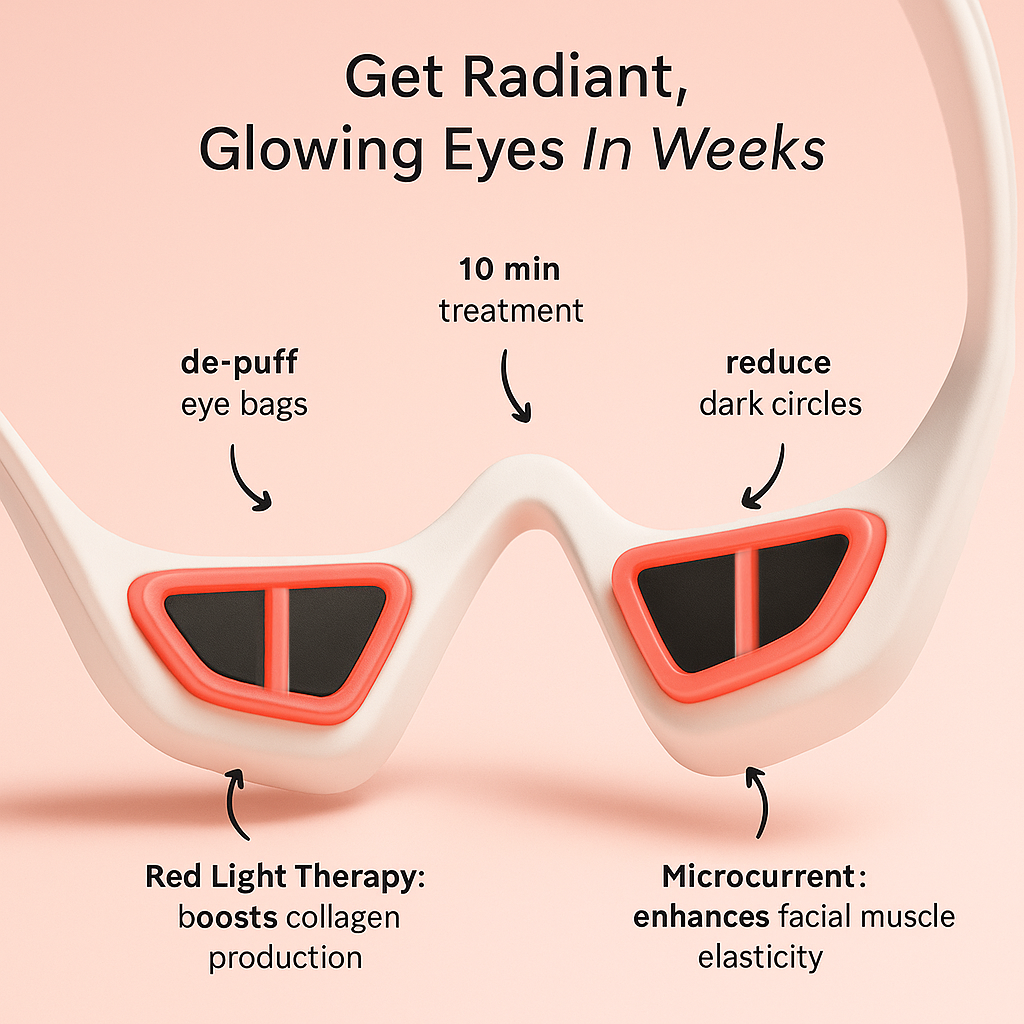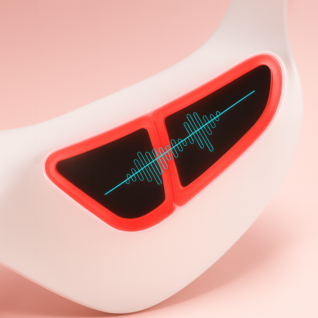 Targeted microcurrent helps “train” the under-eye area, easing tension and softening the look of fine lines—no light added. Ideal pre-makeup or mid-day.