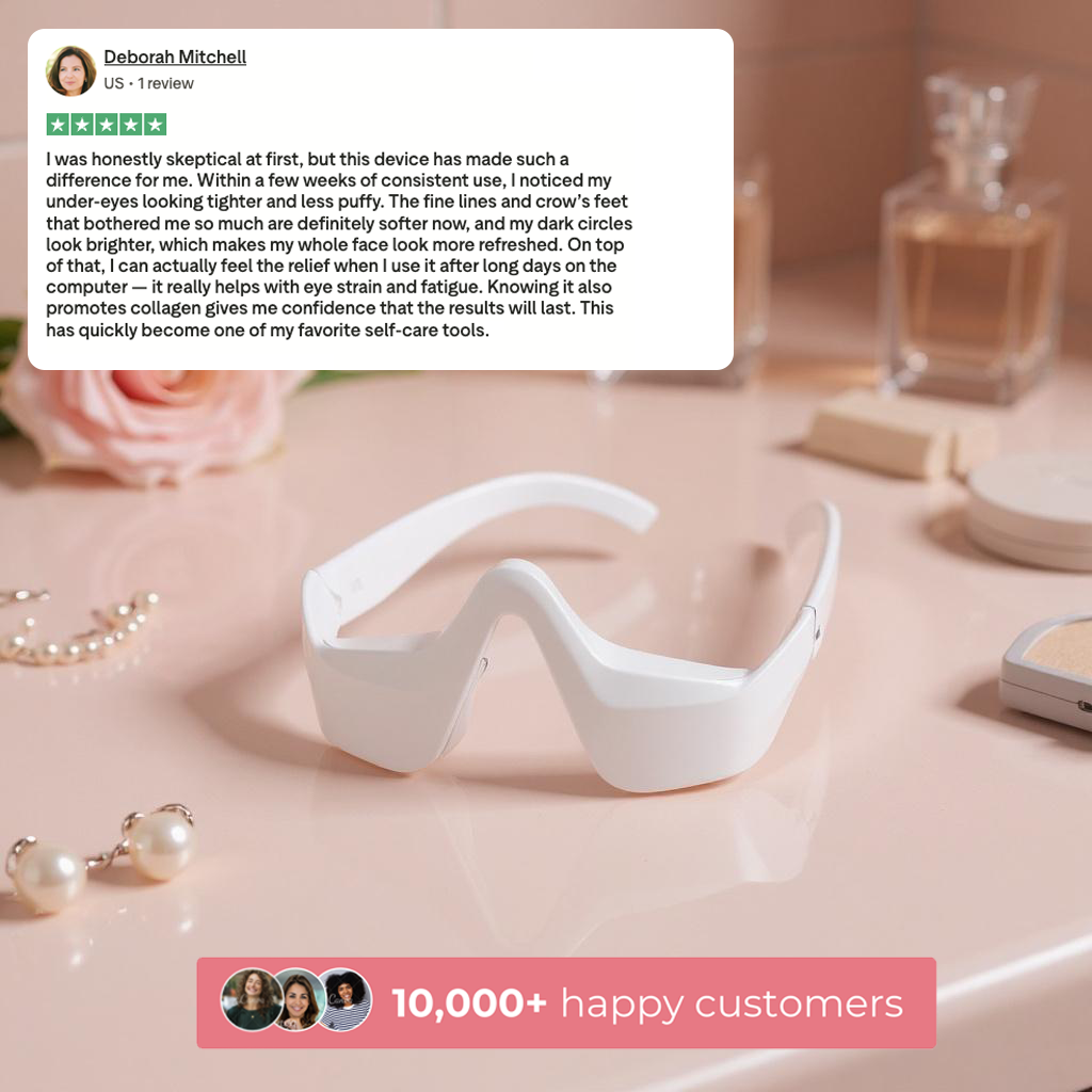 I’m 45, but thanks to Lureva I feel like I’m in my 30s again! I’ve always struggled with deep, sunken eye bags that run in the family, but after a few weeks of consistent use, the change is incredible. My eye bags are dramatically reduced, my crow’s feet have nearly disappeared, and my skin feels firmer and smoother. The best part? It’s completely painless, lightweight, and even relaxing to use. I couldn’t recommend it more!”